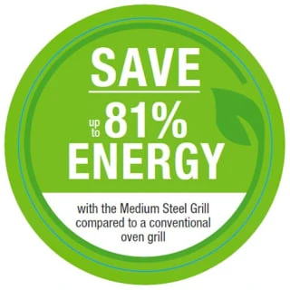 It has a sloped Grill design which channels fat and grease into a separate tray and cooks from the top and bottom simultaneously for fast, even, complete grilling results.